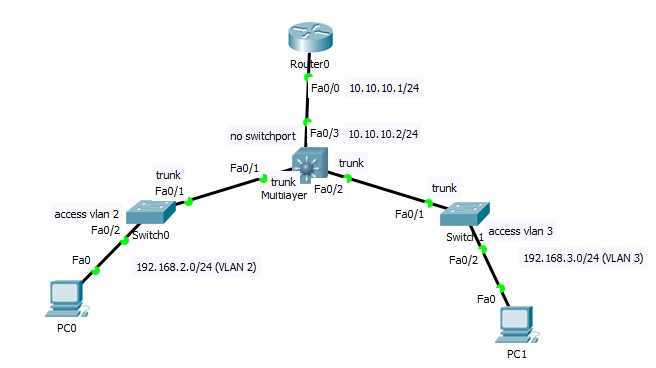 Configure intervlan routing on layer 3. An access port is assigned to a single vlan. Build the network and configure basic device settings. After you create vlans on a switch using cisco packet tracer, you must provide data communication between the vlans. Configuration on a cisco switch .